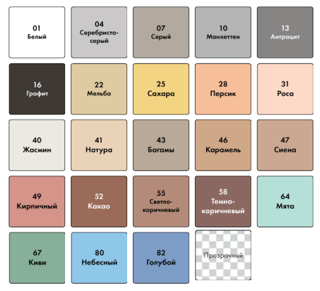 - выпускается 24 цвета, включая прозрачный, в соответствии с цветовой гаммой затирок Ceresit;